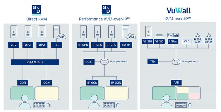 TL;DR: Control rooms are more complex than ever, and no single KVM technology can meet every operational need. High-performance dedicated KVM, performance KVM-over-IP, and scalable KVM-over-IP remote access solutions all play different roles — and the future depends on managing them together, not choosing between them. By unifying KVM, visualization, and video wall management on a single integrated platform, operators gain faster workflows, better situational awareness, and more reliable decision-making during mission-critical moments. VuWall and G&D are working together to make this seamless, flexible, operator-centric ecosystem the new standard in modern control rooms.